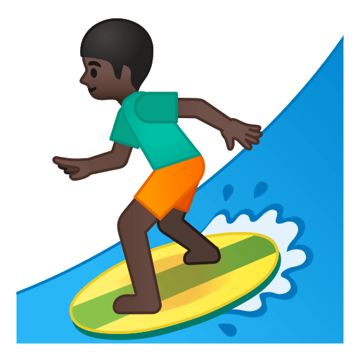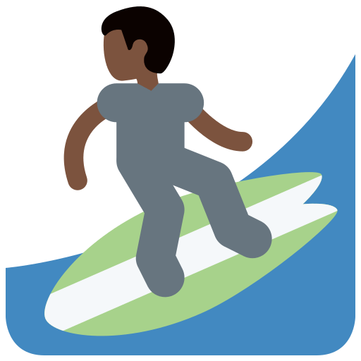 This is a variant of the Surfer Emoji / Person Surfing Emoji with a dark skin tone applied. The Person Surfing: Dark Skin Tone Emoji was added to the Skin tones category in 2016 as part of Emoji 3.0 standard. This is a fairly fresh emoji, so its support may be limited on some devices.