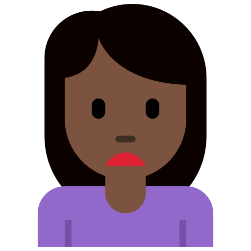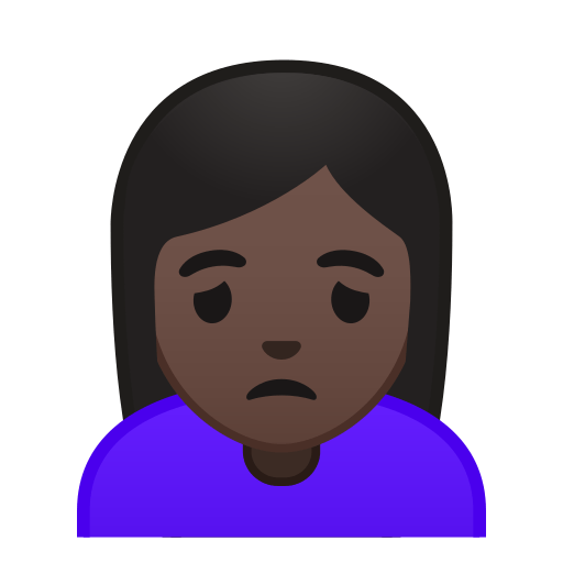 This is a female-gendered variant of the Person Frowning Emoji with a dark skin tone applied. The Woman Frowning: Dark Skin Tone Emoji was added to the Skin tones category in 2016 as part of Emoji 4.0 standard. This is a fairly fresh emoji, so its support may be limited on some devices.