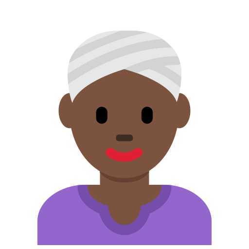 This is a female-gendered variant of the Person Wearing Turban Emoji with a dark skin tone applied. The Woman Wearing Turban: Dark Skin Tone Emoji was added to the Skin tones category in 2016 as part of Emoji 4.0 standard. This is a fairly fresh emoji, so its support may be limited on some devices.