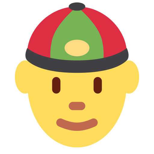 This icon depicts a man smiling with an open mouth wearing a Gua Pi Mao. This emoji symbolizes a Chinese man, the ancient Chinese hat, and Chinese culture and heritage. It could be used to suggest a man who is Chinese, China, Chinese culture, or even Asian culture in a generalized way. Asian Emoji could also be used in Chinese New Year texts.