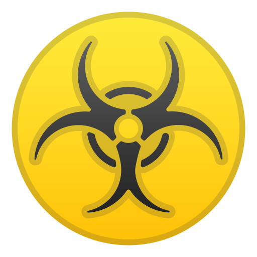 Similar to the Radioactive sign, the international biohazard symbol is a warning against biological substances that pose a threat to the health of living organisms, primarily that of humans. It can also be used metaphorically meaning something is deadly. Biohazard Emoji can mean "This place poses a great biohazard threat!".