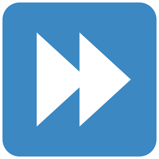 Fast-Forward Button Emoji shows a blue and white “fast forward” symbol used on VCRs, CD players, and iPods. It could mean fast forward, skip, speed something up. This emoji could be used when discussing older technology, or as a way of telling someone to jump ahead of the more glib or boring parts of their story. Fast-Forward Button Emoji usually has a playful and humorous tone when used in text chatting.