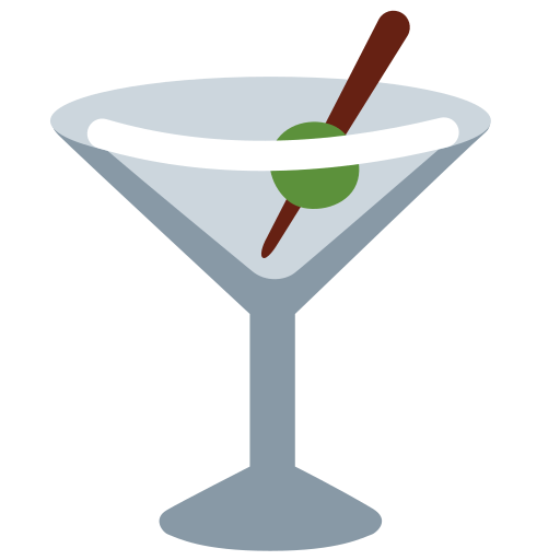 The image of a cocktail glass with a thin stem and a wide surface area, filled with liquid is the emoji symbol for cocktail drinks. It is often associated with martinis due to its appearance. Cocktail Glass Emoji can mean "I've had a few cocktails last night" or "I want to drink a martini!".
