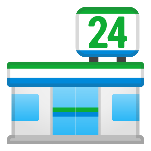 The image of a convenience store building with the number 24 written on a plaque is the emoji typically used in relation to something that is available or open non-stop. Convenience Store Emoji can refer to an institution as well as a person. It can mean “I’m available 24 hours a day!” or to signal that something is still open.