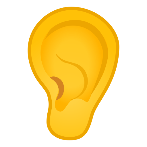 The image of a human ear is the emoji that symbolizes the act of listening to something or someone or the act of paying close attention. This emoji can also be related to the act of hearing in general. Ear Emoji can mean "I can hear you very clearly!" or "I am all ears!" meaning "I am paying close attention to what you are about to say."