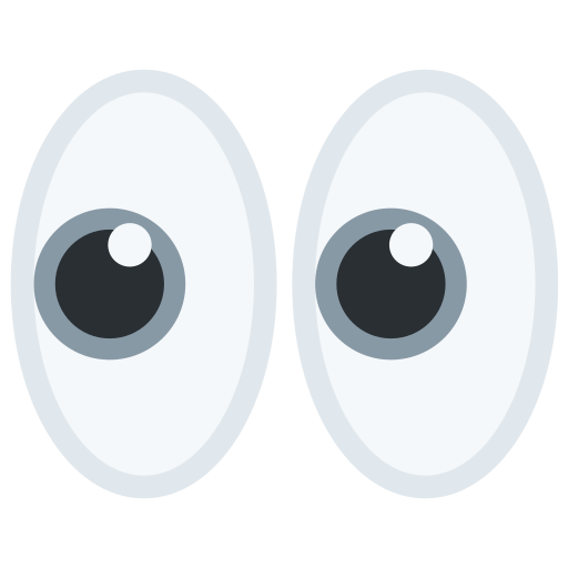 This pair of funny looking cartoon eyes, glancing slightly to the left, may be used to approve attractive photos or as a «shifty eyes» to convey a deceitful act. Eyes Emoji is a widely used emoji with mostly positive connotations.