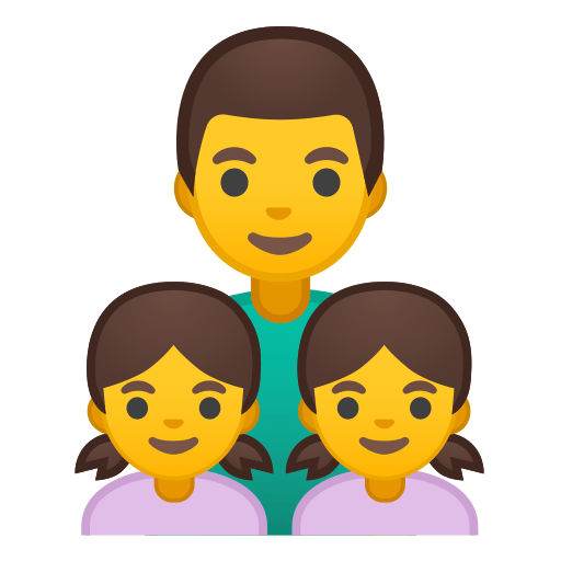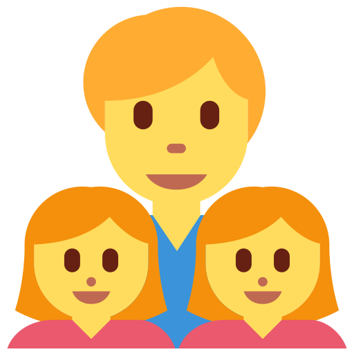 The image of a man and two girls sitting next to each other is the emoji symbol for family of three: a father and his daughters. It can refer to blood related individuals, as well as to individuals that have a strong emotional bond.