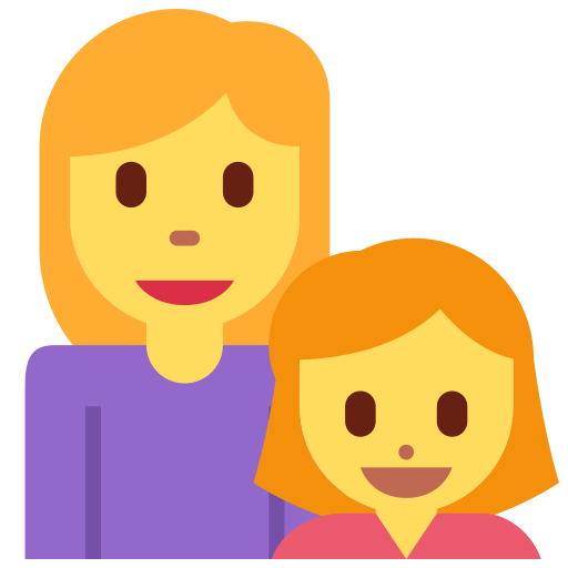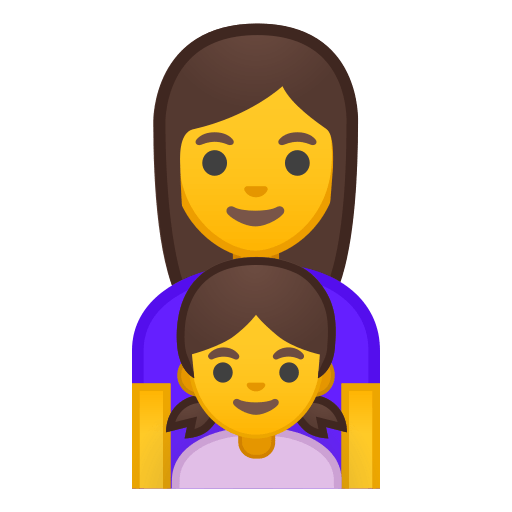 The image of a woman and a girl sitting next to each other is the emoji symbol for family of two: a mother and her daughter. It can refer to blood related individuals, as well as to individuals that have a strong emotional bond.