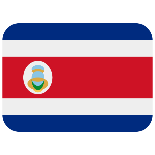 Flag of Costa Rica emoji consists of five horizontal bands of blue, white, red, white and blue. The white elliptical disk with the National Coat of Arms inside it is placed toward the hoist-side of the double-sized red band.