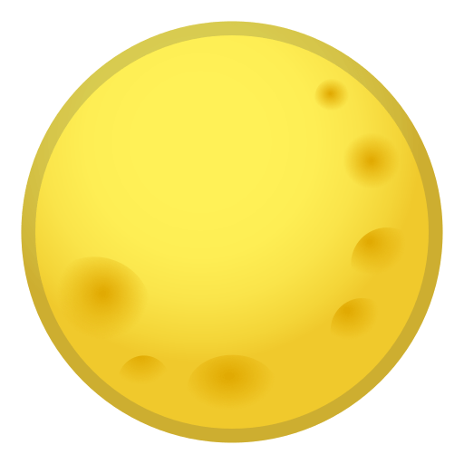 The full moon emoji is the fifth phase (full) of the moon which occurs when the moon is farthest from the sun and the entire side of the moon is visible from Earth. A full moon is the backdrop of many spooky stories and is often connected to werewolves, witches and Halloween celebrations.