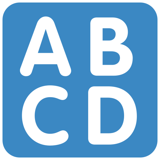 The image of a square with the capital letters A, B, C and D written on it is the emoji intended to be used on a software keyboard, or other input screen to toggle capital letter input. Input Latin Uppercase Emoji can mean "I forgot to push the button Caps before writting this document!".