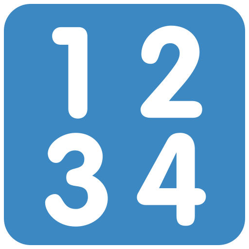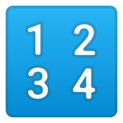 The image of a square with the numbers 1, 2, 3 and 4 written on it is the emoji intended to be used on a software keyboard, or other input screen to enable symbol input, as opposed to alphabetical or symbol input. It is used for sharing phone numbers, addresses, making a list or counting. Input Numbers Emoji can mean "Write his phone number down for me!".