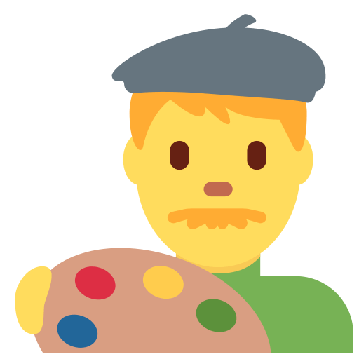 The image of a man holding a traditional painter’s palette in his hand is the emoji that represents an artist. This emoji can be utilized in many contexts when referring to various artistic inclinations, not only the act of painting itself.