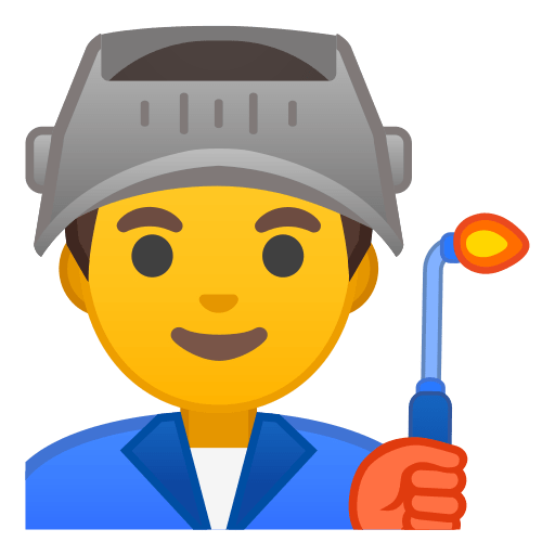 The image of a man wearing a welder's mask or a helmet on his head and holding a burner in his arm is the emoji that stands for a factory worker. This emoji refers to someone who manufacture goods or operate machines processing one product into another.
