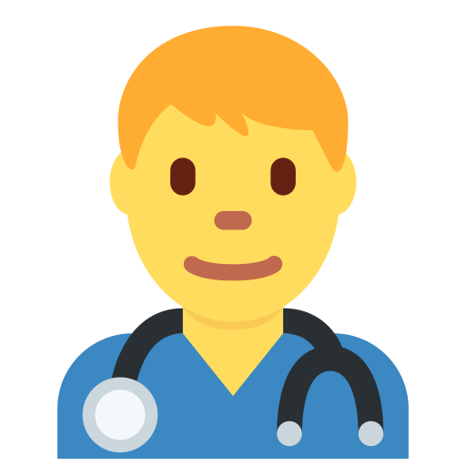 The image of a man dressed in a lab coat with a stethoscope on his shoulders is the emoji that represents a health worker. This emoji can be utilized in any context when referring to a doctor, nurse or pharmacist.