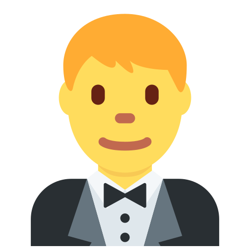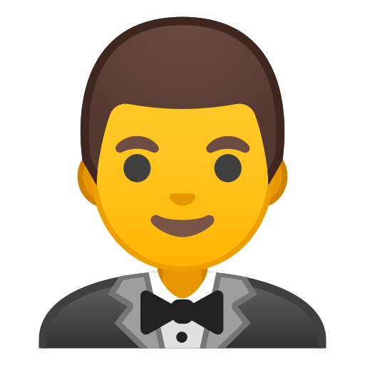The image of a man wearing a tuxedo, dressed for a formal occasion is the emoji that represents the gender pair for the bride emoji, hence the groom. It can also refer to dressing up to the nines or attending an occasion that requires a formal dress code. Man in Tuxedo Emoji can mean "The groom looked so handsome!".