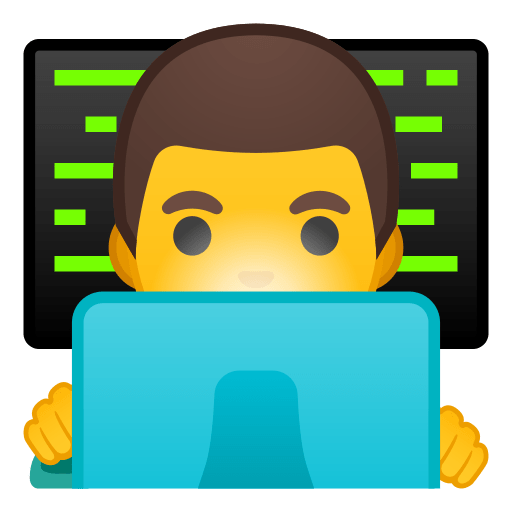 The image of a man behind a computer screen is the emoji that stands for a technologist. This emoji refers to someone who implements technology within a various fields of science and engineering.