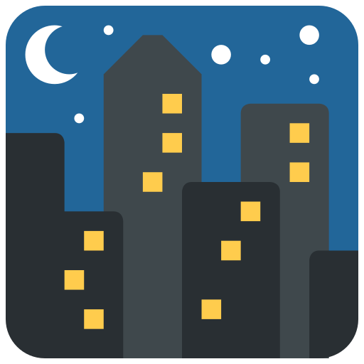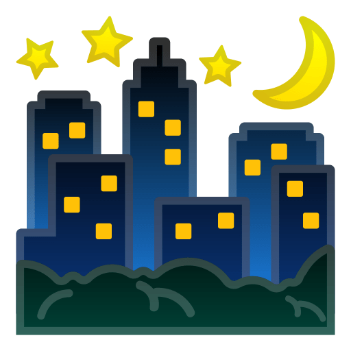 This icon shows a city skyline at night with stars and the moon inside a portrait frame. This emoji could mean nighttime or a large city. It could be used to indicate a night on the town or that it is nighttime and someone is heading to bed. Night with Stars Emoji has a largely romantic tone and is usually used in courting texts. It has neither a positive or negative connotation.