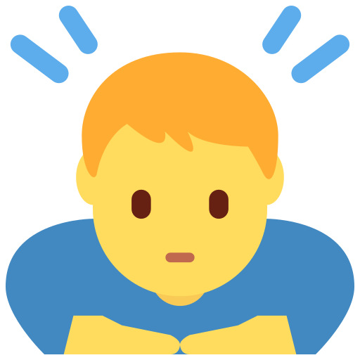 This emoji of a person with his head bowed down and hands placed in front of him means respect. Often used for other purposes, it was intended to depict dogeza, the Japanese practice of kneeling and prostrating oneself to show deference to someone or to express an apology. Person Bowing Emoji may say "I bow down to you in respect!" or "I'm sorry!"
