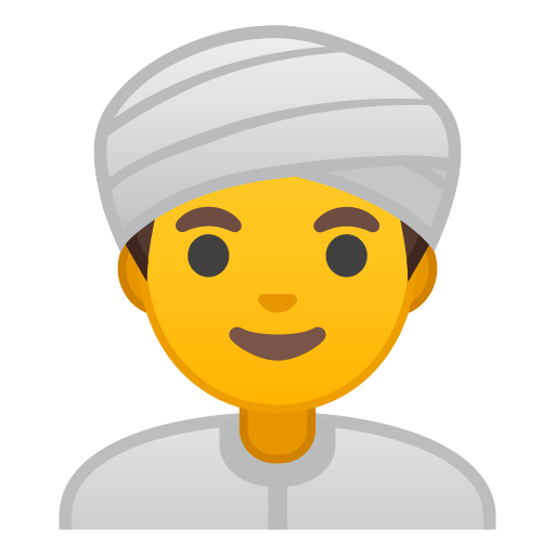 The image of a man's face wearing a turban on his head is the emoji that represents a sultan or people of Islamic religion. Depending on context, it can also be interpreted as a djin. Person Wearing Turban Emoji can mean "The main character in this movie is a sultan." or "I've seen many Islamics wearing turbans on their heads!".