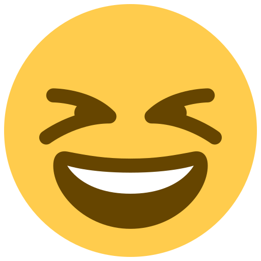 This icon depicts a face with eyes tightly shut and mouth open in a wide smile, showing teeth. This emoji could mean emphatic joy, laughter, surprise or excitement. Grinning Squinting Face Emoji is often used upon receiving good news, divulging a surprise, showing enthusiastic support, or because something hilarious was mentioned. It’s one of the more widely used emojis and strongly implies laughter.
