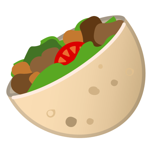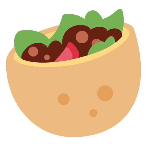 Similar to the burito emoji, the stuffed flatbread emoji represent a fast food item which contains salad, sliced meat or falafel wrapped or stuffed in bread. Stuffed Flatbread Emoji can refer to the dish, donner kebab, or to fast food meals in general. It can mean "I adore kebabs!" or "Let's grab some fast food for lunch!".