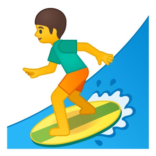 The image of a person on a surfboard, riding on a wave in the ocean is the emoji symbol for surfing. It can relate to the person doing this activity, the sport itself or to a competition or location where surfing can be done. Surfer Emoji can mean "We are going surfing in the ocean!".