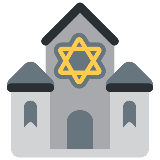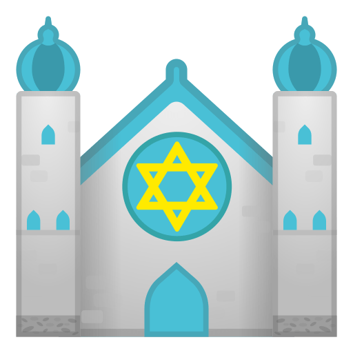 The image of a building with the Cross of David on it is the emoji that represents a synagogue. A synagogue is a place of worship for followers of Judaism and the equivalent of a church for people of this religion. Synagogue Emoji can mean "There is an old synagogue in this neighbourhood." or "He prays at a synagogue."