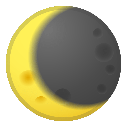 The waning crescent moon symbol represents the last, or eighth phase (crescent) of the moon which occurs when the smaller left side of the moon reflects the light of the sun (is light) and the majority of the right half of the moon is dark. Waning Crescent Moon Emoji generally refers to the moon or is mistaken for an eclipse.