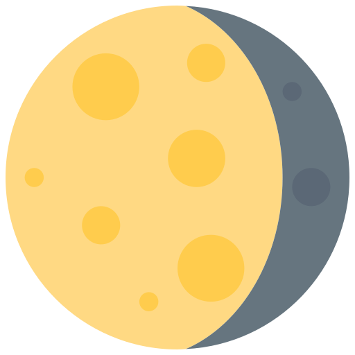 It shows a moon mostly lit, except for a right sliver that’s dark. Waning Gibbous Moon Emoji references the waning moon. This emoji is most likely used for describing this.