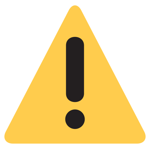 This icon shows a black exclamation point inside the outline of a triangle. It is the universal warning or caution symbol. Warning Emoji could mean caution, warning, slow down, “hold up”, “step off”, or road work or construction in the area. This emoji is mostly used to express potential, metaphorical danger, or that someone is entering dangerous emotional territory.