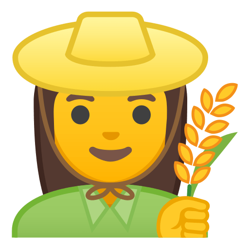 The image of a female face wearing a straw or cowboy hat on her head is the emoji that represents a farmer. This emoji refers to someone being related to the agriculture or сattle breeding.