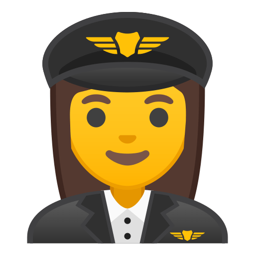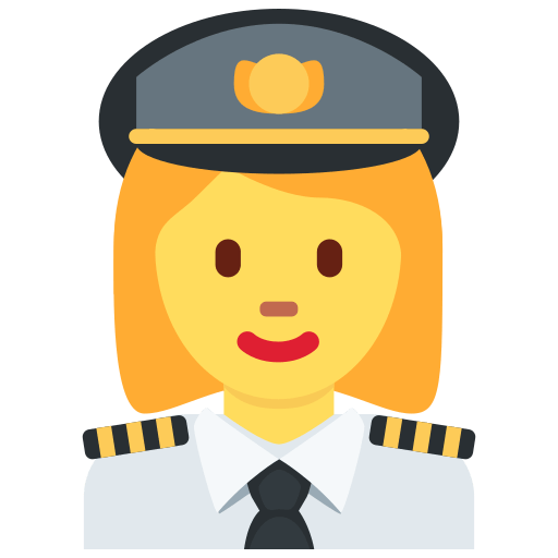 The image of a woman wearing black hat with a badge in the middle, dressed in the uniform with epaulets is the emoji that represents a pilot. This emoji refers to someone who flies or navigates an aircraft.