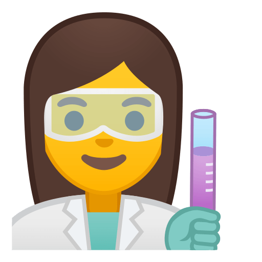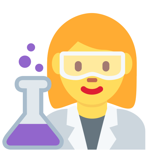 The image of a woman wearing preserves on her face, dressed in a lab coat and holding the test tube with a strange liquid in it is the emoji that represents a scientist. This emoji can be utilized in any context when referring to a knowledge worker or science.